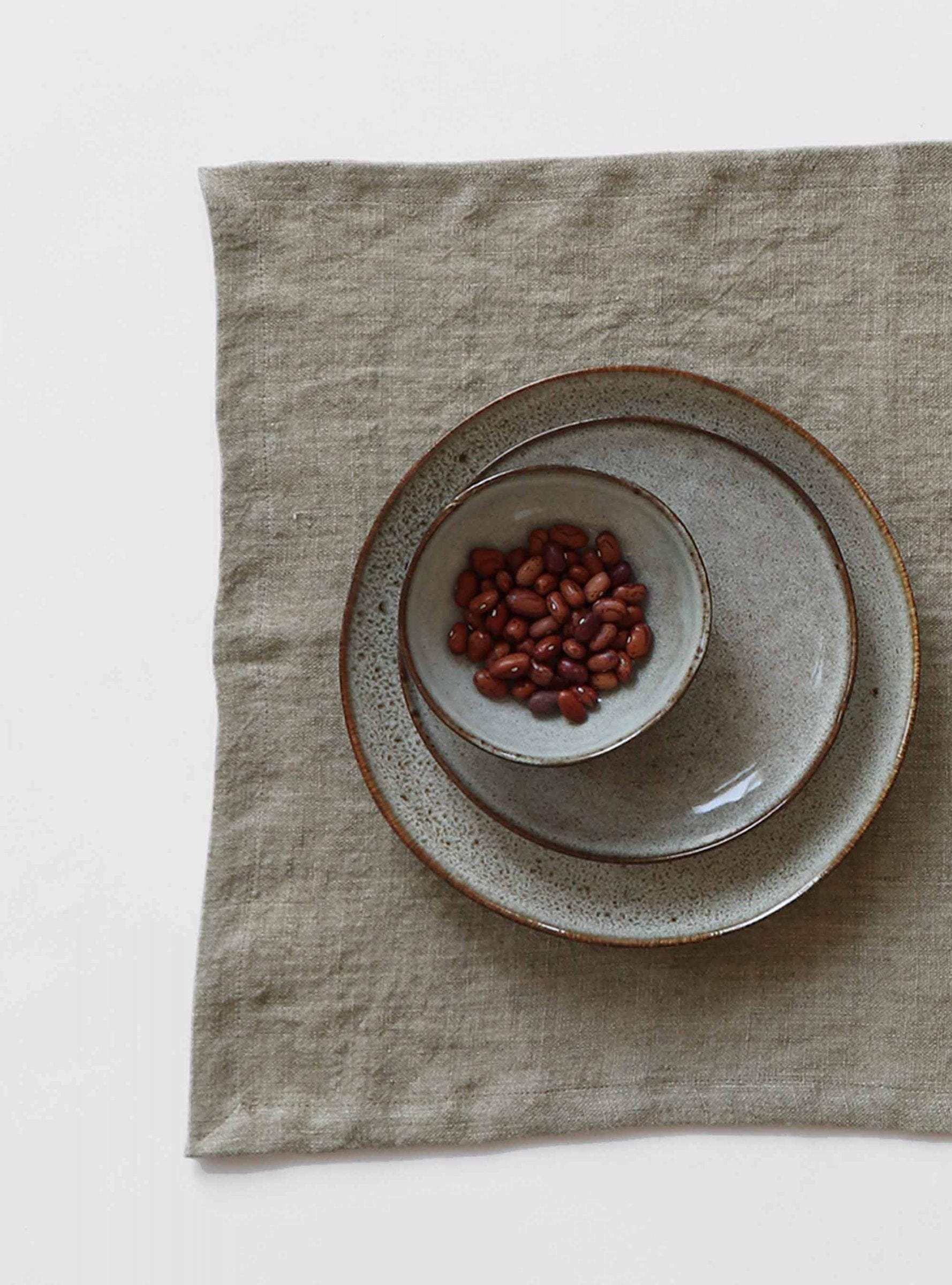 Handgjord bordstablett i 100% linne med dekorativ kantsöm. Att duka med en bordstablett ramar enkelt in dukningen och ger en varm välkomnade känsla kring matbordet. Vacker att använda ensam vid bordet, eller med duk som finns i samma dova färgskala. Stryk den varsamt för ett slätare uttryck eller låt den torktumlas på svag värme för ett behålla den vackra texturen.