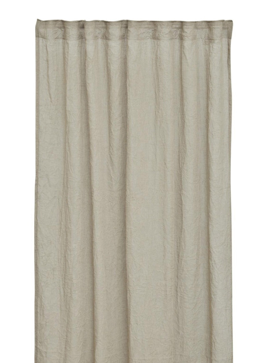 Mirja är ett enfärgat krinklat gardinset i en polyester- och linneblandning. Fint fall och skrynklig effekt.
