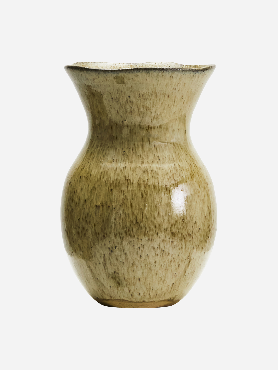 Inför en känsla av elegans i hemmet med denna utsökta keramiska vas, med en glansig beige glasyr. Handgjord för en unik charm, finish, färg och storlek vilket gör varje del unik. Vasens design erbjuder en bred öppning, perfekt för att arrangera en vacker bukett eller uppvisning av grenar. Dess graciösa form kompletterar utan ansträngning alla inredningar med sofistikering i vardagsrummet, din matsal eller hall.