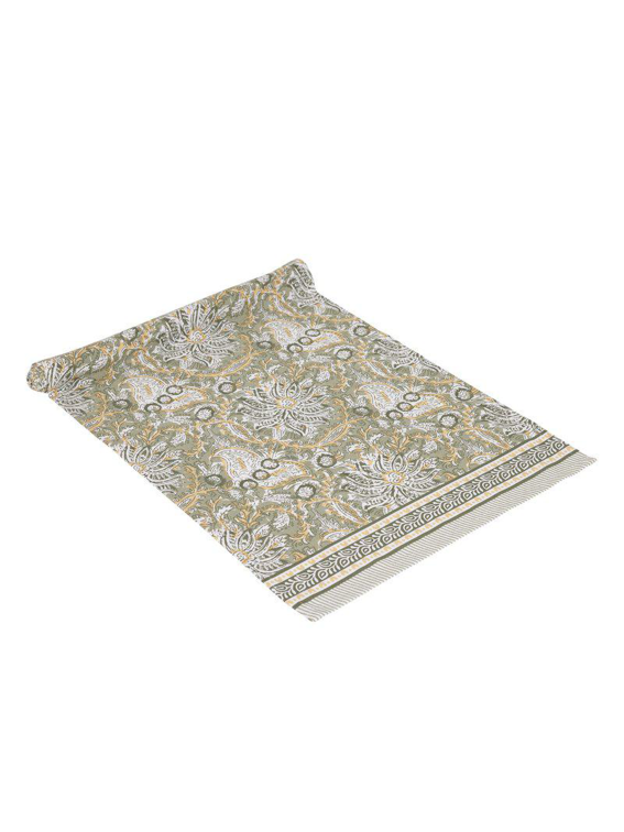 Bordslöpare i 100% bomull med ett modernt och härligt mönster som skapar en fräsch och stilfull känsla i dukningen. Löparen är prydd med en elegant bård runtom som ramar in designen och ger ett harmoniskt och genomtänkt uttryck.