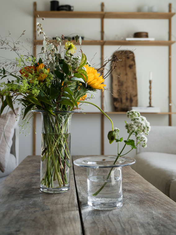 En vas med en öppen famn – formen som breder ut sig upptill fångar både blomman och blicken.