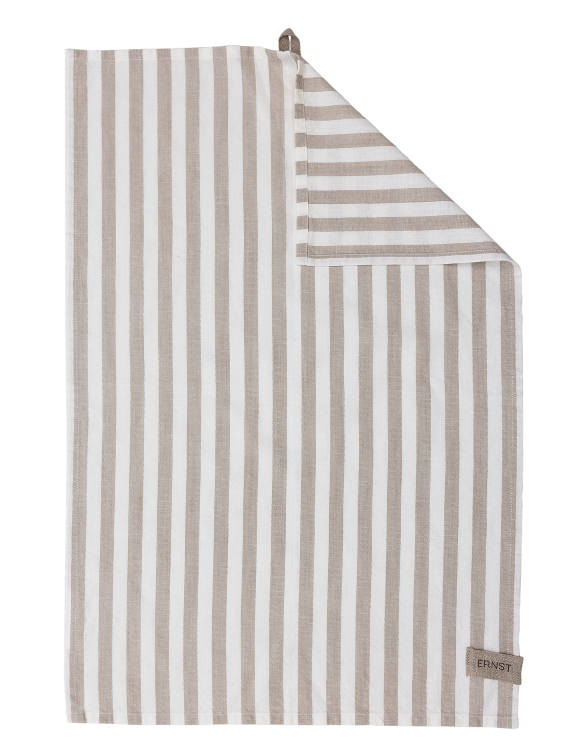 ERNST Kökshandduk, Beige/Vit Bred Rand