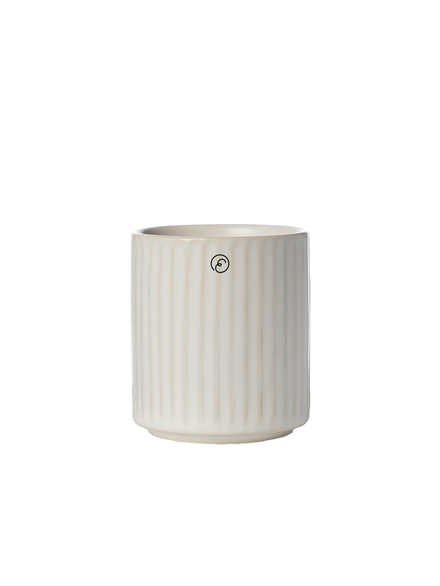 ERNST kopp med räfflad struktur i naturvit är en mångsidig liten favorit, perfekt för både värmande drycker och små serveringar som marmelad eller färska bär.