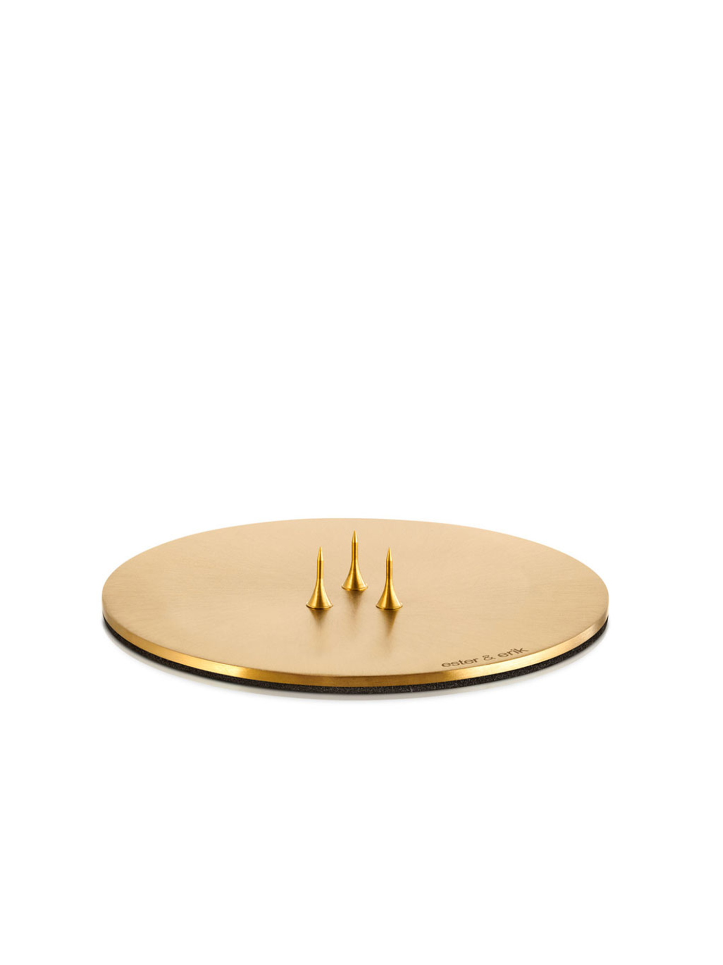 Rund ljusplatta från Ester & Erik, perfekta till blockljus och konljus. Ljusplattan är tillverkad i aluminium och är försedd med tre piggar i botten, vilket gör att alla ljus står stabilt.