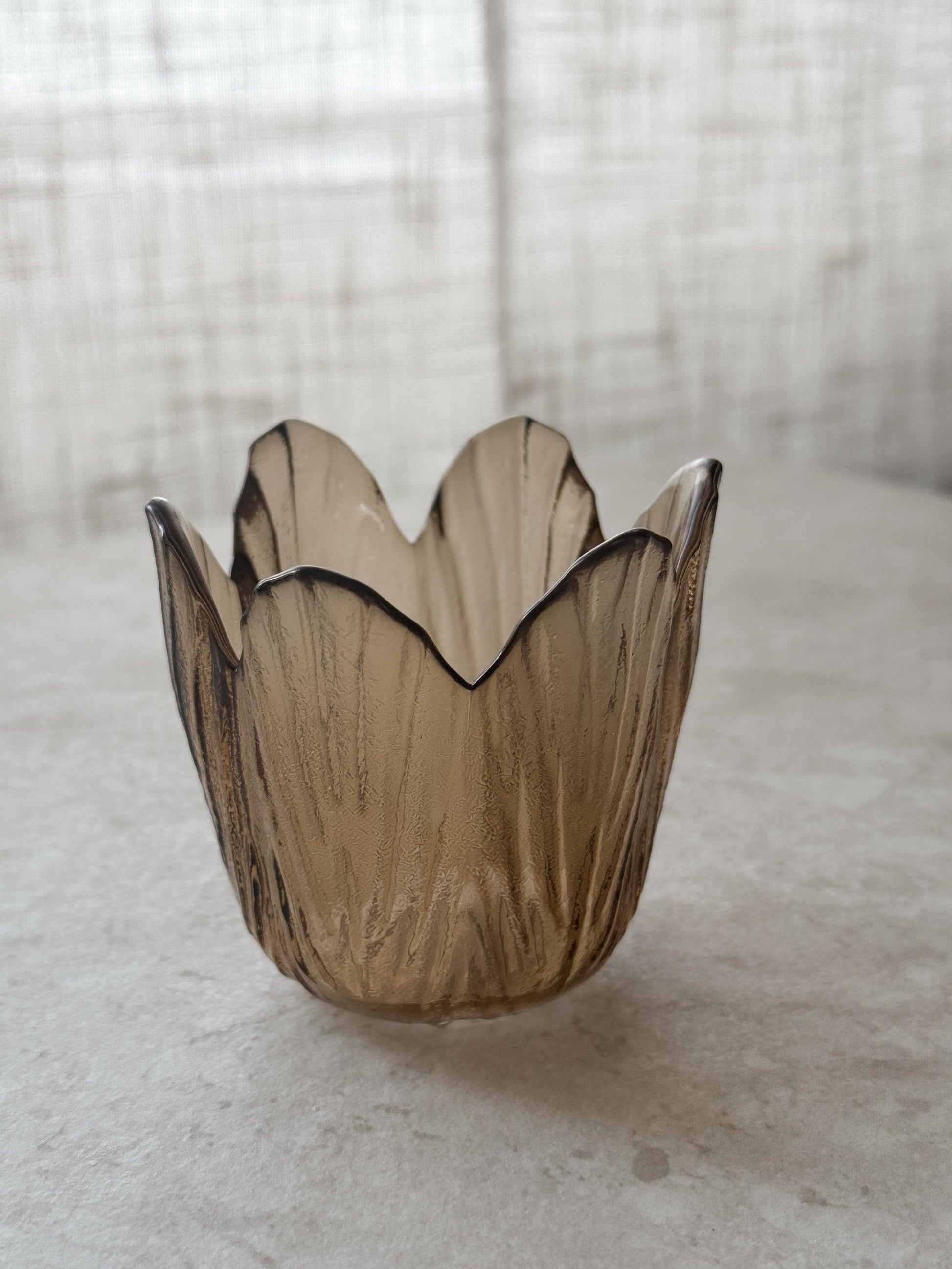 Ljuslykta i glas med bladform. Ljuslyktorna finns i flera färger och är fina att blanda.