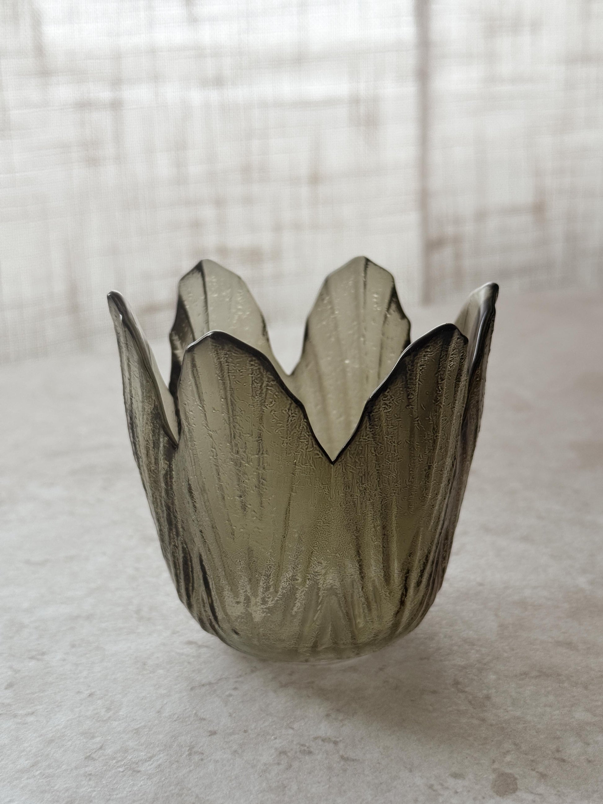 Ljuslykta i glas med bladform. Ljuslyktorna finns i flera färger och är fina att blanda.