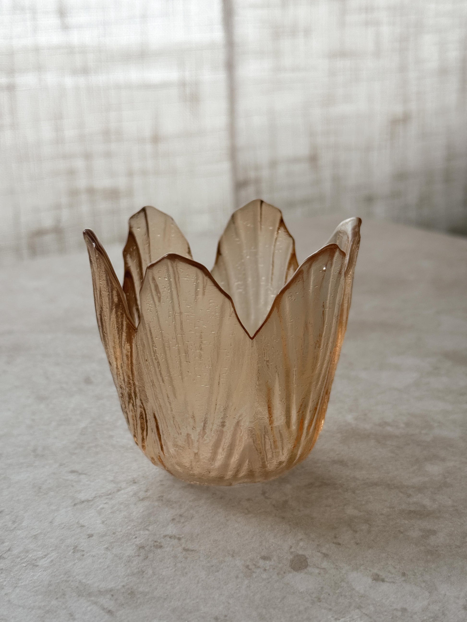Ljuslykta i glas med bladform. Ljuslyktorna finns i flera färger och är fina att blanda.