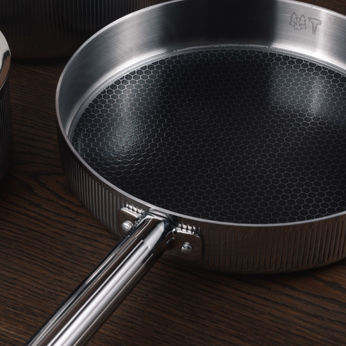 På insidan väntar vår nya, populära och genomarbetade FROSTSTICK.2-teknik – en keramisk, PFAS-fri beläggning som både är tålig och effektiv. Den gör att maten släpper utan ansträngning och att rengöringen blir nästan lika njutbar som matlagningen. Du får känslan av klassisk stålstyrka kombinerat med framtidens teknologi. En beläggning som till skillnad från många andra beläggningar också ger en krispig stekyta / skorpa på det du vill ska ha detta.