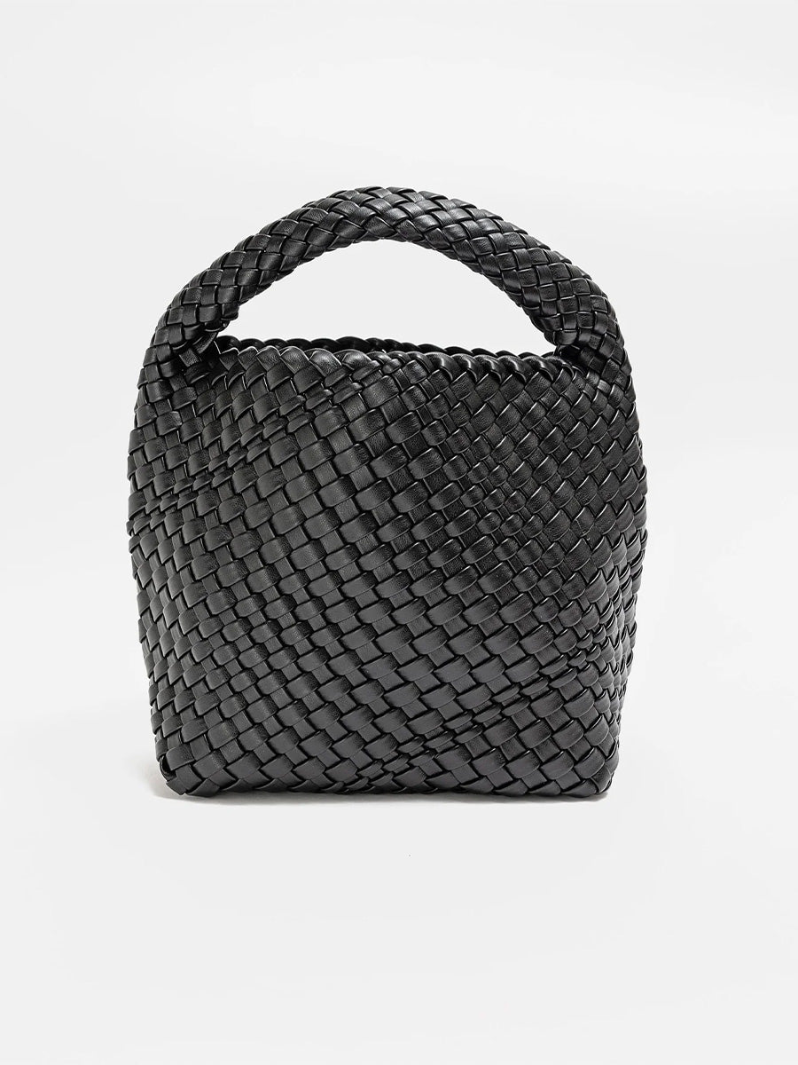 Mia-väska liten med sitt betydande flätade tyg i mjukaste imitationsläder. Perfekt för både vardagliga utflykter och kvällar på stan, den ger en chic touch till vilken outfit som helst. Levereras med en axelrem inuti och har en praktisk magnetisk stängning för enkel åtkomst.