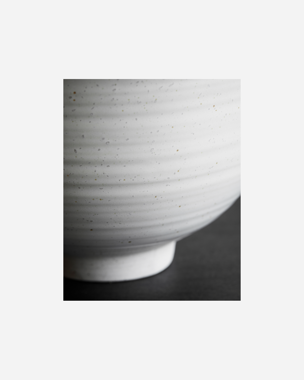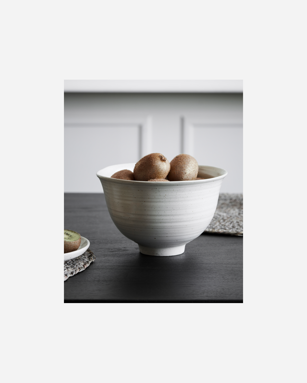 Vacker serveringsskål från House Doctor. Den är gjord av porslin och har en vit, fläckig yta. Använd tillsammans med andra Pion-produkter.