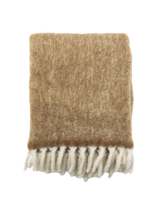 Mjuk tjockare pläd i en borstad ullblandning med fransar.
