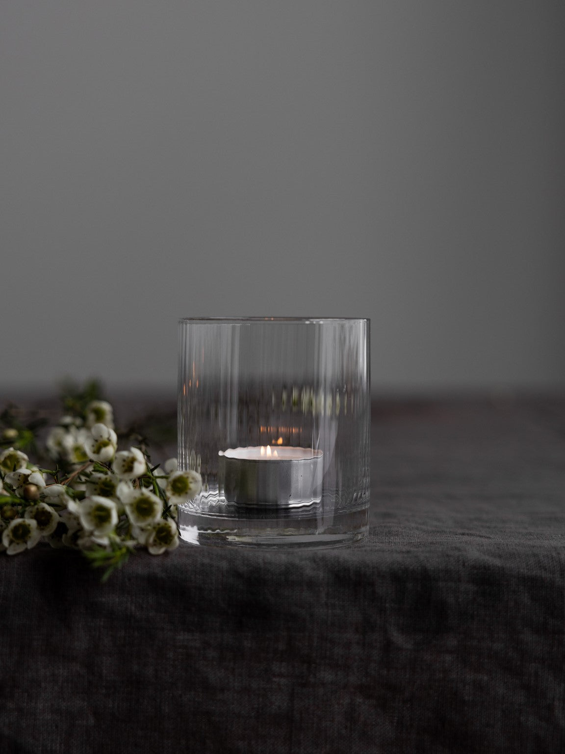 Med den vackra ljuslyktan Ramsjö i randigt glas kan du skapa en stilren och tidlös känsla. Ljuslyktan är designad för att passa perfekt till värmeljus och kan även användas som en stilfull vas.