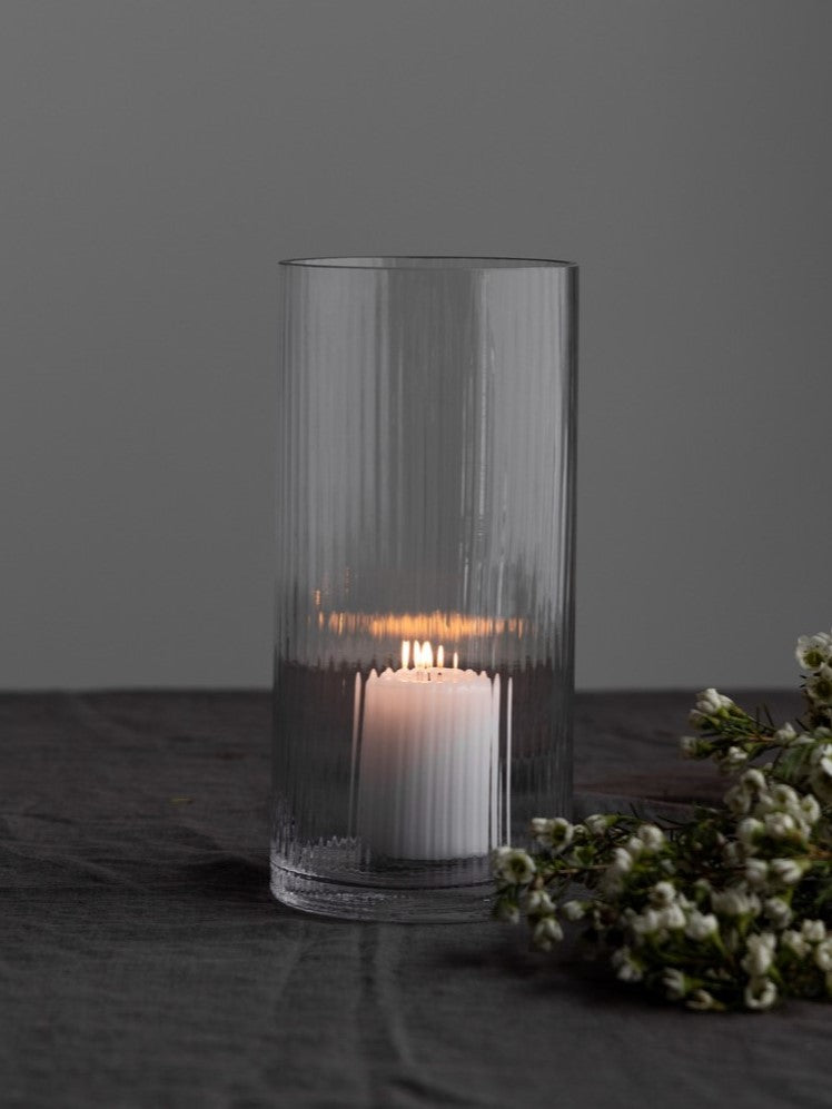 Med den vackra ljuslyktan Ramsjö i randigt glas kan du skapa en stilren och tidlös känsla. Ljuslyktan är designad för att passa perfekt till värmeljus och kan även användas som en stilfull vas.