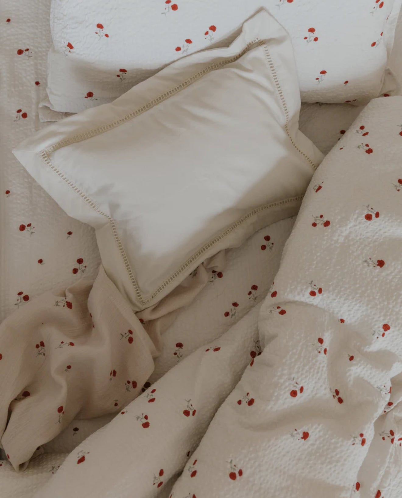 Påslakanet är tillverkat av vackert strukturerad och mjuk bäckebölja i ekologisk bomull som ger en extra dimension till det stilrena Poppy-mönstret.