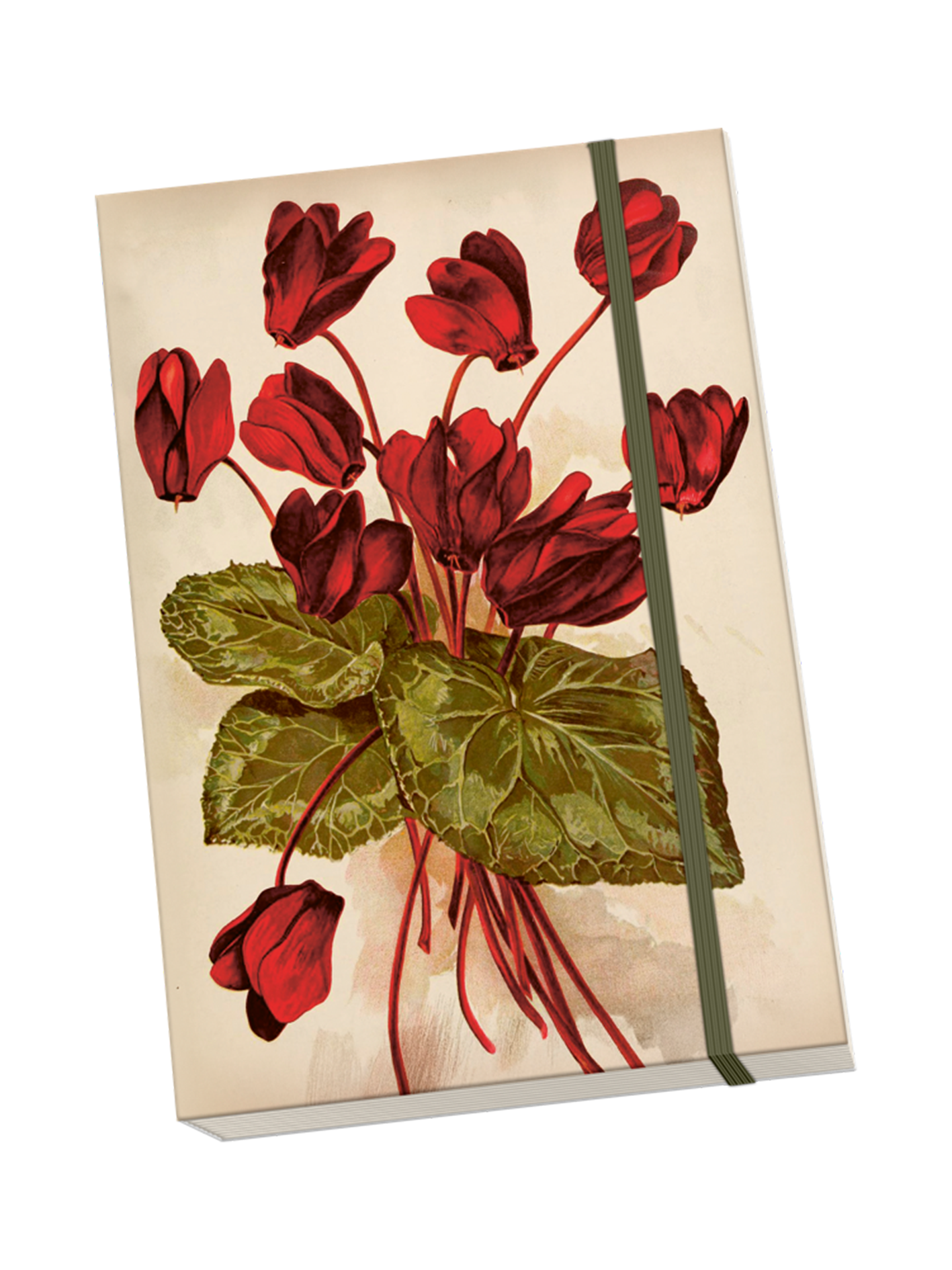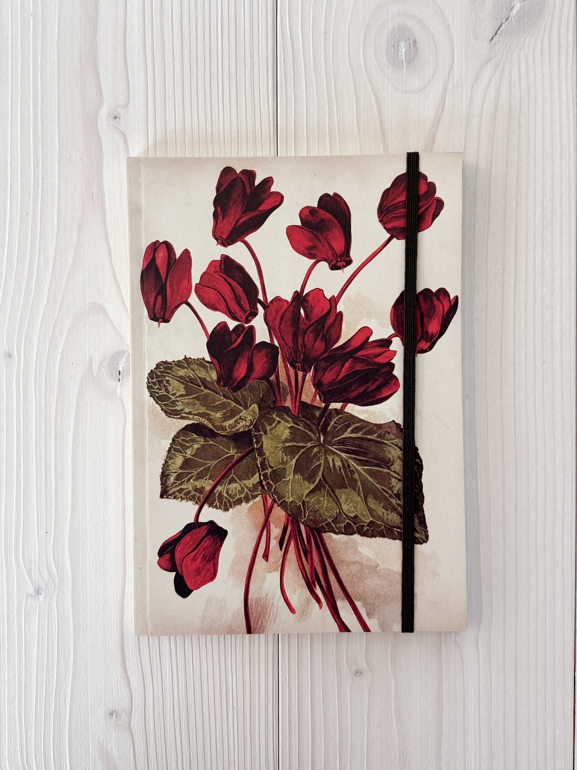 Fin skrivbok med 140 sidor blanka sidor. Gummisnodd för stängning.