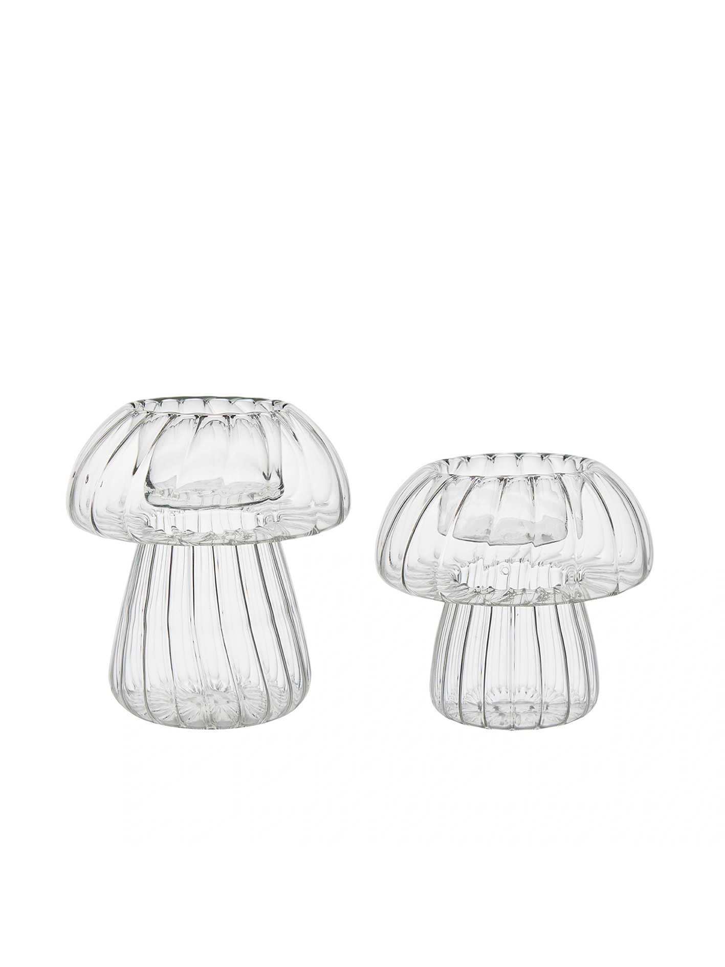 Söt ljuslykta i glas med plats för värmeljus i toppen. Finns i två storlekar.